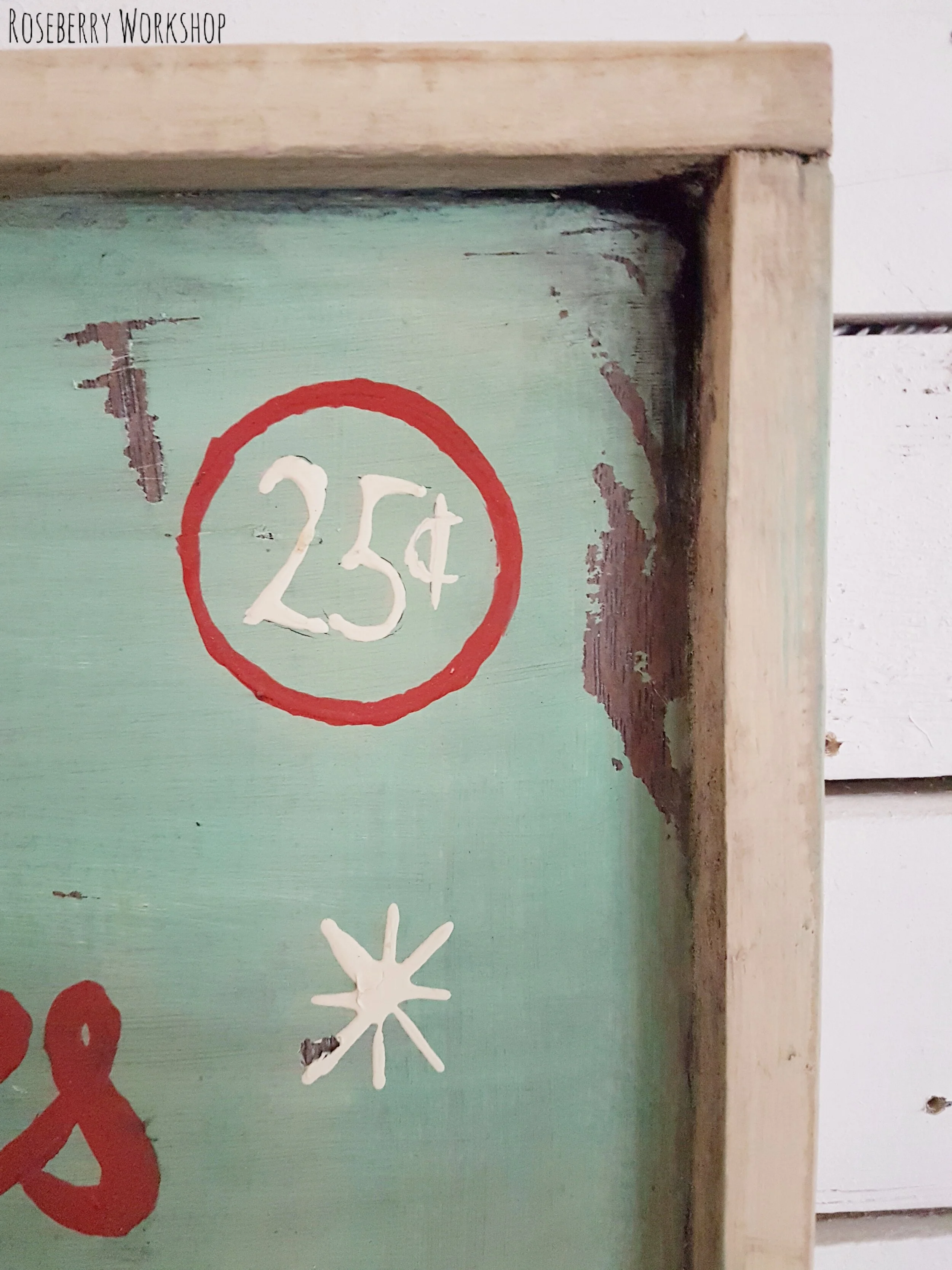 This handmade sign features a 3D vintage rocking horse with old fashioned glass bulbs.